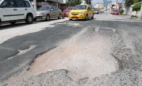 El mal estado de una calle en la Kennedy afecta al vecindario. Hay familias que han rellenado los huecos con piedras para reducir el impacto