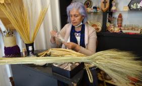 Una cuencana elabora artesanías con la fibra de la gramínea. Cecilia Yánez viajó a Trigopamba, en Loja, para perfeccionarse