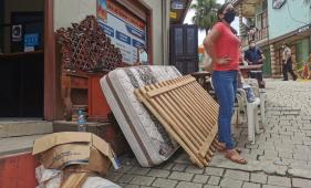 Habitantes que rodean la zona cero retiran sus pertenencias. Se quedaron sin casa. Y el Municipio, sin oficina