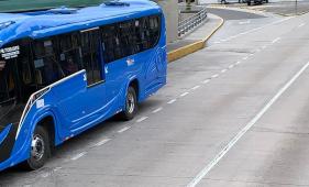 Los pasajeros reclamaron a la ayudante del conductor, pues él se bajó del bus y los encerró en plena vía del norte de Quito