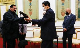 Steven Seagal le regala una espada samurái a Nicolás Maduro
