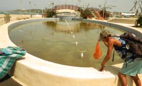 La iluminación es escasa, las piletas no sirven, hay agua estancada y las pocas áreas verdes se marchitan. Turistas y locales exigen atención permanente