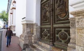 Los portones de iglesias en la zona patrimonial de Cuenca conservan el trabajo de artistas de la Colonia.