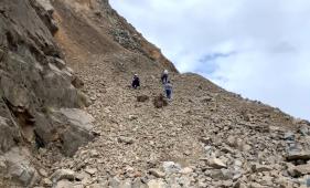 Pese a la prohibición de circular por el km 49, vehículos y peatones atraviesan la zona de derrumbes. Un grupo de persona se salvó el martes de quedar atrapadas entre rocas y piedras