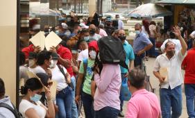 Largas filas de usuarios en los exteriores de la Cancillería Zona 8