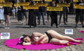 Antitaurinos se manifestaron semidesnudos en Madrid