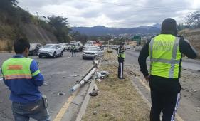 El camión mediano descendía pro la vía en sentido Quito-aeropuerto