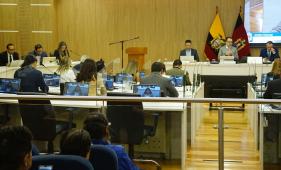 La ministra de Gobierno, Zaida Rovira, y el director del IESS, José Lama, acuden a la reunión contra el paro de la Conaie