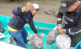 Pesca ilegal en Churute: rescatan 510 cangrejos atrapados en mallas
