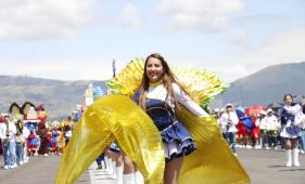 Miles de familias disfrutaron del recorrido de delegaciones estudiantiles, bandas y carros alegóricos en el norte de Quito