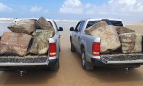 A la costa de Brasil llegan objetos de caucho tan pesados que se necesitan varias personas para alzarlos. Serían parte de una reliquia de guerra