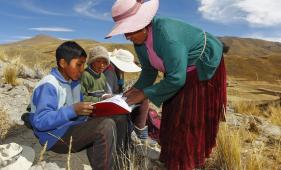 Alumnos peruanos suben a un cerro para recibir clases virtuales