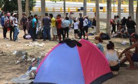 Migrantes instalan campamento temporal para entregarse a autoridades mexicanas