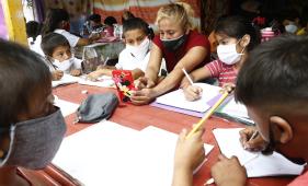 Bachita Menoscal, la líder comunitaria que ha convertido su casa en una escuela. Allí los niños se conectan de manera virtual con sus maestros