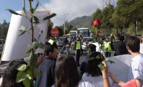 Estudiantes y padres de familia salieron a la calle para un plantón por el hombre que falleció atropellado el día jueves.