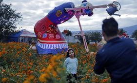 El ‘Valle de Catrinas’ fue colocado en el municipio de Atlixco, en Puebla. Artistas locales participaron en la elaboración de las estructuras de 8 metros de alto