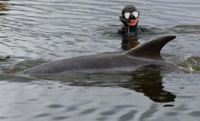 El delfín "Manoliño" consigue librarse del arpón por sí mismo