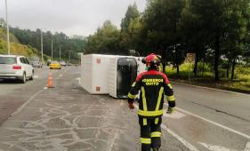 El camión peridó el carril de circulación y se volcó