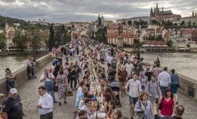 Con un banquete popular y sin distancia social la capital de checa levantó la mayoría de restricciones impuestas para luchar contra la COVID-19