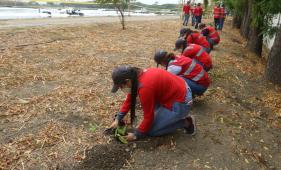 Un muro natural es plantado en las lagunas de oxidación. Ayer se sembraron las primeras 400 especies. Vecinos piden replicar la acción en los canales de agua