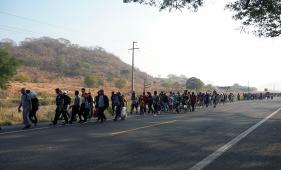 Son unos 1.000 migrantes que caminan en hilera castigados física y mentalmente por el clima