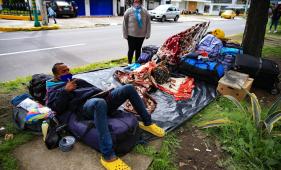 Alrededor de un centenar de venezolanos, entre ellos niños llevan varias noches a la intemperie junto a la sede del Consulado en Quito.