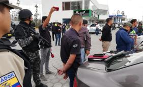 Uniformados de la caravana presidencial realizaban la mañana del 10 de octubre tareas de avanzada cuando encontraron vehículos estacionados de forma sospechosa en los parqueaderos de la gasolinera de Petroecuador de frente al aeropuerto.