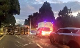 Camión se vuelca en Quito: sin heridos y reanudan el tránsito en Simón Bolívar