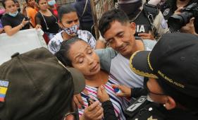 En los exteriores de la antigua Penitenciaría del Litoral, familiares lloraban desconsolados porque no sabían de lo ocurrido con sus parientes. Muchos pasaron toda la noche en el lugar.