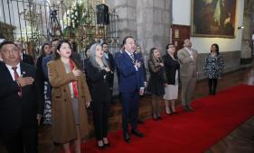 El alcalde Pabel Muñoz junto con concejalas de Quito colocaron una ofrenda floral al Mariscal Sucre en la Catedral