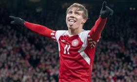 La promesa danesa, de 20 años, marcó un triplete en su debut como titular con su selección