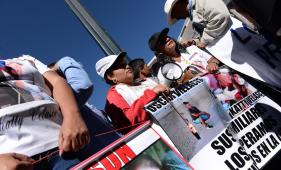 Los familiares de Katty Velasco y Óscar Villacís, pareja asesinada en la frontera, se instalaron frente al Palacio de Carondelet.