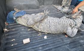 Rescatan a un cocodrilo que estaba amarrado y herido al sur de Guayaquil