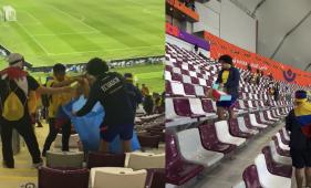 Hinchas ecuatorianos limpian el estadio luego del partido ante Países Bajos