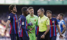 El central sacó 15 tarjetas amarillas y dos rojas. Con la igualdad, el equipo de Xavi terminó el año con 38 puntos, al igual que el Real Madrid