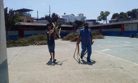 Vecinos y padres de familia limpian la escuela donde se educan sus hijos