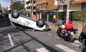 Producto del choque un vehículo quedó volcado entre las calles Italia y Vancouver
