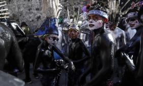 México: hombres se pintan con aceite de auto para pedir buena cosecha de maíz