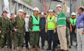 El presidente Daniel Noboa inaugura puente bailey sobre el río Blanco