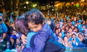 Luisa González y Daniel Noboa, y su 'abrazo prohibido' a la niñez en campaña