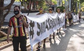Los jugadores de los Leones Negros de la segunda división salieron a las calles para protestar por la anulación del ascenso y por las próximos 6 años