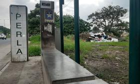 Hasta techos desbaratados desechan detrás de una parada de bus en La Joya