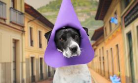 Perritos en UBA Quito se visten de cucuruchos y romanos para ser adoptados