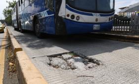 El carril exclusivo de la metrovía tampoco se salva de los huecos