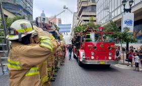 El agua y la emoción refrescaron al centro con los bomberos de Guayaquil