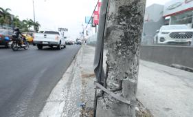 Un poste en mal estado en la Carlos Julio Arosemena alerta a la ciudadanía
