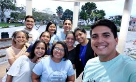 Jóvenes católicos se reúnen en un parque de la ciudadela Acuarela del Río, para una jornada dedicada a María
