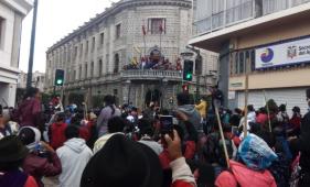 La Agencia de Coordinación Distrital del Comercio informó que, alrededor de las 03:00 de este sábado 12 de octubre, tres camiones con unos 200 indígenas llegaron hasta el mercado San Roque, en el Centro Histórico de Quito.