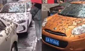 Un video muestra como en Beijing, gusanos parecen cubrir varios autos y las calles de la ciudad asiática
