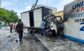 Sujetos que iban en un camión robado hicieron explotar el automotor para despistar y luego cometer un robo